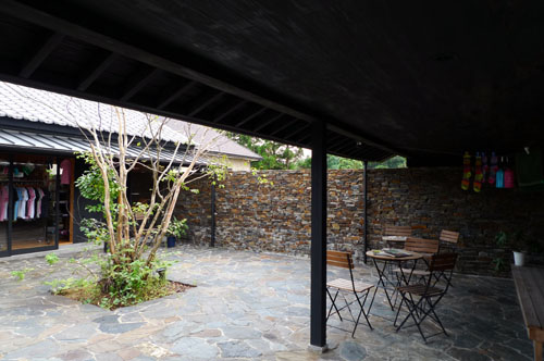 中庭の様子。地元の石を多用した素晴らしい建築です。
