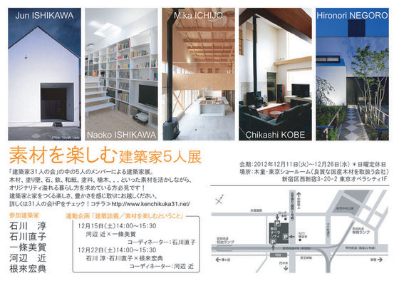 また、下記の日程で建築談義「素材を楽しむということ」も企画しております。