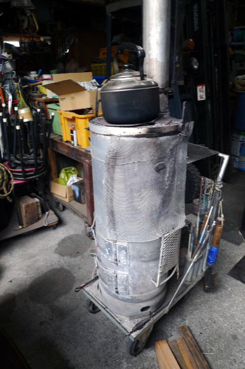 プロパンガスのボンベで作った薪ストーブ。