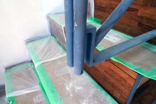 この写真は下塗りの錆止め塗装の状態。この上にマットな黒い塗装を施しています。