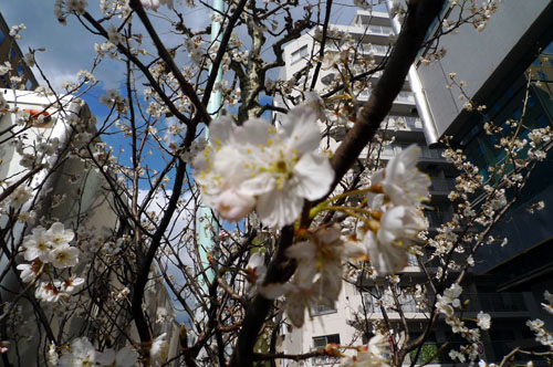 窓を開けて見下ろしたところに、一本の小さな桜が植わっています。