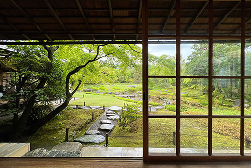 京都東山にある『無鄰菴』には、年に何度か足を運んでいます。この日はあいにくの雨模様。それがまたいい。南禅寺界隈には、明治から昭和にかけ、政財界の大物たちがつくりあげた別荘が15軒たたずんでいます。このうち見ることができるのは、ここ無鄰菴だけ。元総理大臣・山縣有朋の別荘なのですが、市に寄贈され、公開されています。東山を借景とし、琵琶湖疎水の水を庭に引き込んでいます。庭は七代目・小川治兵衛(1860-1933)が手掛けた初期の傑作。