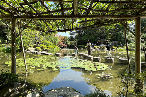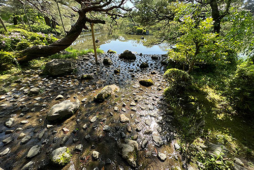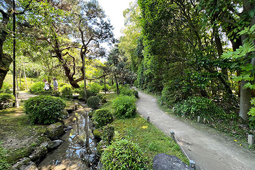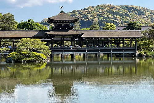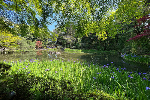 平安神宮の『神苑』に足を踏み入れてきました。これが凄く良い。明治28年、小川治兵衛の作庭によるもの。社殿を取り囲むように南・西・中・東のエリアがあります。まず南神苑では「枝垂桜」の樹々の風景が広がっており、花見シーズンに訪れたい。西神苑は百虎池に咲く「花菖蒲」で、初夏に訪れたい。中神苑は蒼龍池の「カキツバタ」で、ちょうど紫色の可愛らしい花が咲き誇っていました。池に据えられた沢飛石「臥龍橋」は、龍の姿を表現しており、三条大橋と五条大橋の橋脚の古石材を再利用したもの。渡るのが童心にかえり楽しい。最後は栖鳳池にかかる「泰平閣」に腰を掛け、涼みながら心を癒します。京都御所からの移築だそうです。秋になると、見事な紅葉風景が広がっていることでしょう。草花による季節の移ろいを感じる庭園で、シーズン毎に訪れたい。