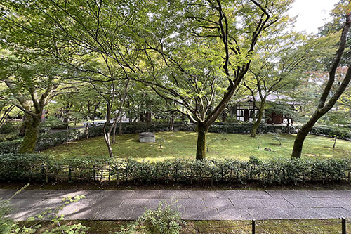11月になり、京都市内の観光スポットは人、人、人。古刹・真如堂に行ってきました。静かなお寺。正式名称は真正極楽寺。総門、本堂、三重塔、元三大師堂、鐘楼堂などによる伽藍。大文字山を借景とした「涅槃の庭」は曽根三郎による作庭(1988年)。書院から眺めるパノラマ景色が美しい。「随縁の庭」は重森千青による作庭(2010年)。境内にあった材料を再利用し、モダンに仕立てています。境内にはモミジがたくさん植わっています。紅葉の時期は人が増えるようですが、今の時期は極楽を独り占め。正面の総門から入るのも良いのですが、東参道からの方が趣あり。