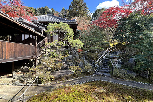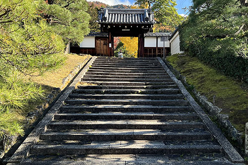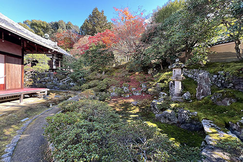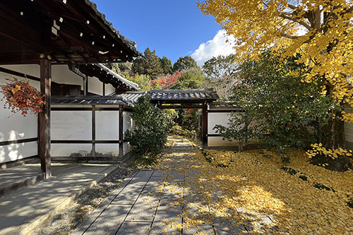 哲学の道界隈を散歩。真如堂の境内を抜け、安楽寺へ。どちらも紅葉の名所のため、人出が多い。安楽寺の門をくぐるのを諦めました。その並びにある霊鑑寺の前を通ったら、特別拝観の案内を目に。通常非公開の場所。穴場かもと思って、拝観してきました。階段を上った先にあるイチョウの黄葉が美しい。現在は池に水はありませんが、東山の山肌を生かした池泉鑑賞式庭園。苔の絨毯に落ちた散紅葉も美しい。ゆったりと楽しむことができました。歴代皇女が住職を務めた尼門跡寺院。境内には100種類以上のツバキが植わっていることから「椿の寺」として知られるそうです。その時期に改めて参りたいと思います。