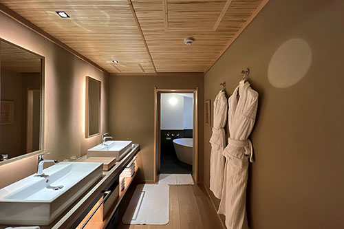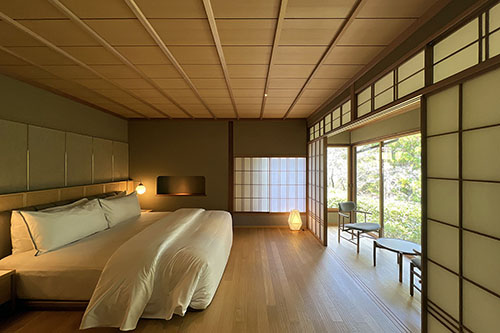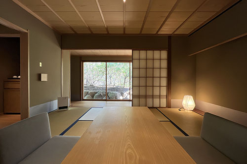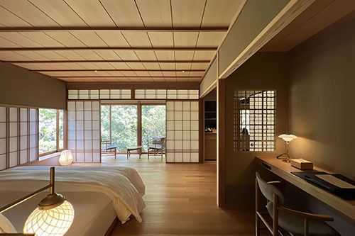 京都・東山『佳水園』に行ってきました。1959年に建てられた数寄屋旅館。設計は村野藤吾(1891-1984)さん、リニューアルは中村拓志(1974-)さんが手掛けています。お部屋は全部で12室(52~100㎡)。何度か訪れており、これまでは「月7」「花1」「月2」のお部屋。今回は「雪3」をご案内いただきました。部屋名は雪月花で構成。日本建築らしい雁行プランが特徴的で、視線の抜けとプライベート感の出し方が秀逸。全室に風呂付。共用のライブラリの居心地も最高。いつまでも佇んでいたい。そんな場所が沢山ある建築です。